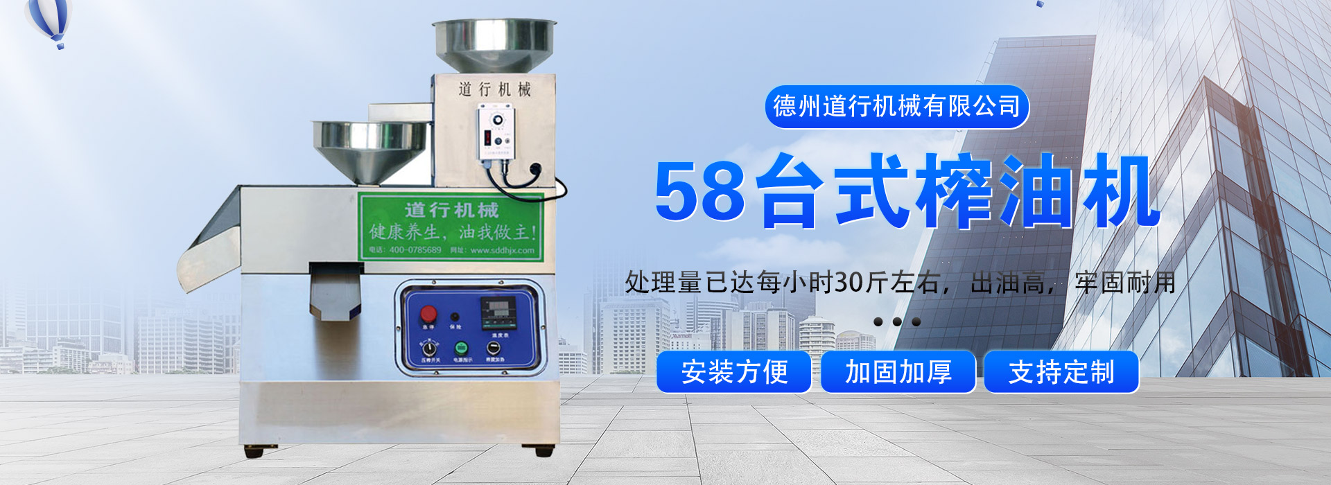 德州道行機械有限公司是一家從事榨油機、香油機、小型榨油機、小型商用榨油機、道行榨油機等食品機械研發(fā)生產(chǎn)的先進企業(yè)。我廠始建于2006年,歷史悠久,經(jīng)驗豐富,以先進的設(shè)備,贏得了廣大客戶的信賴。本企業(yè)是創(chuàng)新型、科技型、服務(wù)型、經(jīng)濟效益、社會效益、環(huán)境效益并重,多年來本企業(yè)研發(fā)人員不斷進取、不斷創(chuàng)新研發(fā)出了許多適應市場需求的高、新、精產(chǎn)品。其中“道行”派系列產(chǎn)品獲得國家專利,專利號:ZL 2022 3 0783927.2 隨著時代的發(fā)展,綠色環(huán)保健康養(yǎng)生日益被社會各界所重視,以市場需求為需主,本企業(yè)技術(shù)人員從未放棄過對‘健康養(yǎng)生’綠色環(huán)保產(chǎn)品的研發(fā),經(jīng)過多年來的努力我們制造出了一系列環(huán)保產(chǎn)品,社會各界及眾多客戶的認可和一致好評。本廠主要生產(chǎn)產(chǎn)品“道行”牌香油機,小型榨油機等機械。型號齊全,可根據(jù)客戶的生產(chǎn)需求量為您量身定做!另外,本公司還提供定制產(chǎn)品及單一設(shè)備的設(shè)計、制造、安裝、調(diào)試和各項技術(shù)...